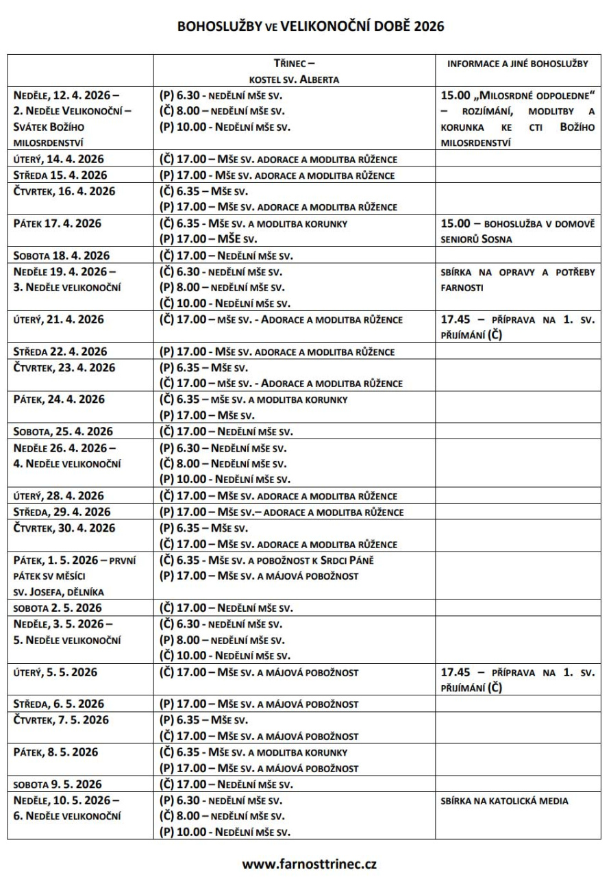 INFORMACE Z FARNOSTI TŘINEC 12. 4. 2026